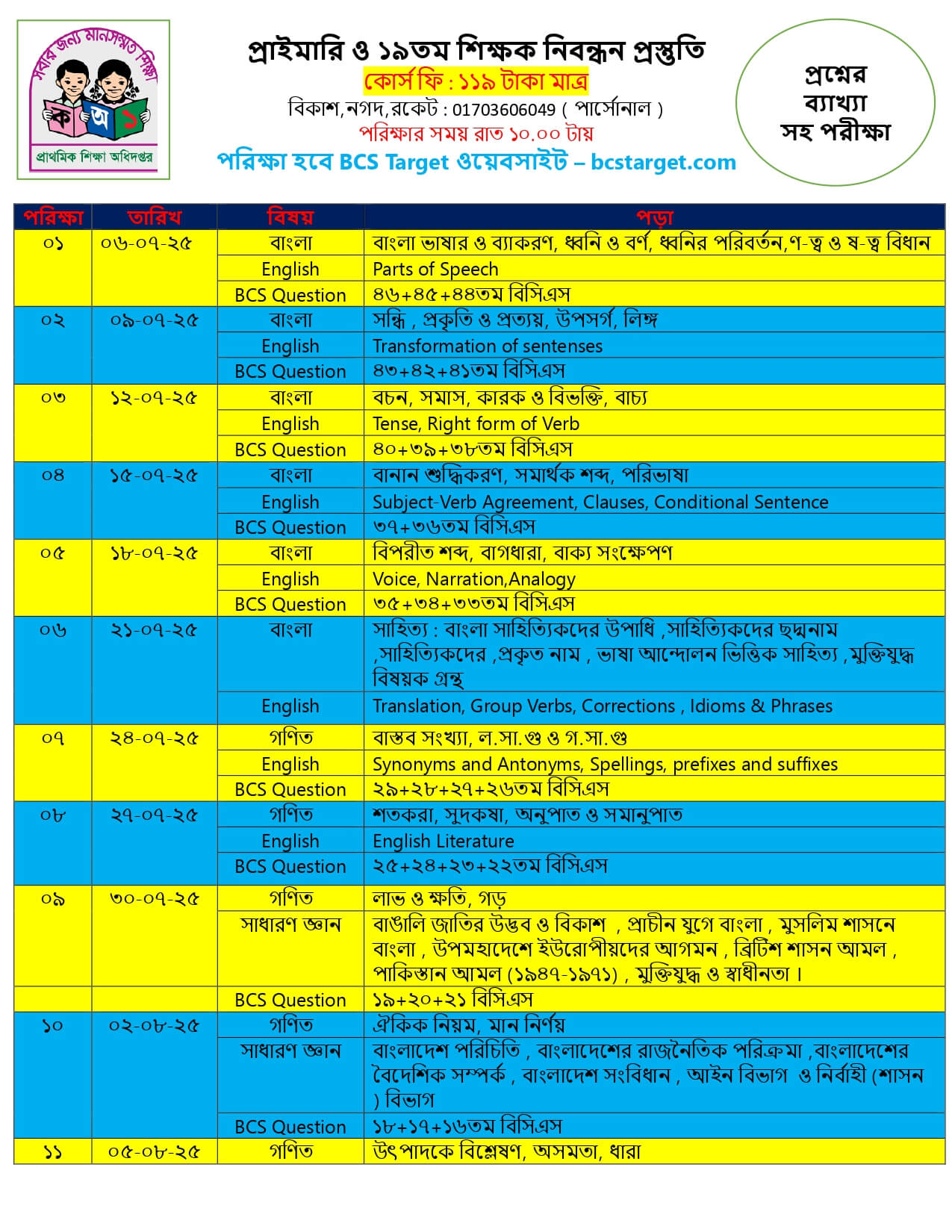 প্রাইমারি ও ১৯তম শিক্ষক নিবন্ধন প্রস্তুতির